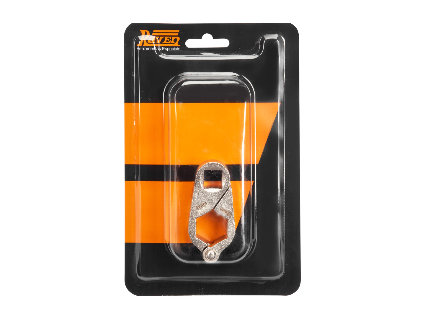 Código: 101016Nome: Chave articulada com encaixe sextavado de 22 mm para sonda lambda / sensor de oxigênio.<ul><li>Encaixe de 1/2".</li><li>Quando fechada, envolve completamente o sextavado da sonda lambda, diferente das ferramentas tradicionais para sondas.</li><li>Suas duas metades abrem e fecham livremente e quando fechadas ficam travadas através de um sistema de mola e esfera e da própria ferramenta utilizada para girar a chave.</li><li>Patente requerida.</li></ul>Família: MotorPeso: 0,15 Kg |
