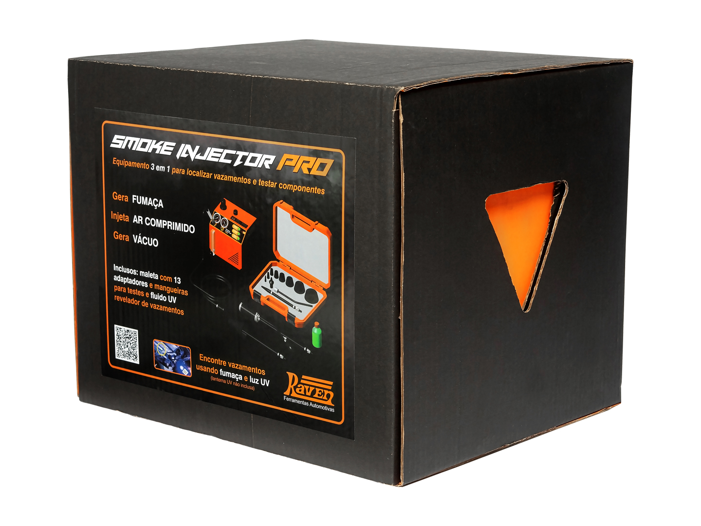 Código: 109200Nome: Smoke Injector PRO - Equipamento 3 em 1 (gera e injeta fumaça / injeta ar comprimido / gera vácuo) para localizar vazamentos e testar sistemas e componentes automotivos (ex.: motor, sistemas de admissão, arrefecimento, cânister, combustível, escapamento, turbo compressor, intercooler etc).<ul><li>A partir do aquecimento de óleo mineral, feito de forma controlada e segura, o 109200 gera fumaça de boa densidade e fácil visualização.</li><li>Conectado a uma linha de ar, o 109200 injeta ar comprimido, possibilitando o ajuste da pressão e da vazão do ar, além de contar com manômetro.</li><li>Através de uma de suas duas mini bombas, o 109200 gera vácuo, que pode ser acompanhado através do vacuômetro do equipamento.</li><li>Incluso maleta plástica com mangueiras e adaptadores equipados com engates rápidos e tampões de borracha, além de um frasco de fluido para testes reagente à luz UV.</li><li>Alimentação em 12V.</li><li>Composição:</li><li>1 - Aparelho gerador / injetor de jatos de fumaça injetor de ar comprimido e gerador de vácuo, com.</li><li>a) Duas mini bombas de vácuo (que produzem pressão de 0,9 bar e vazão de 13 litros por minuto cada).</li><li>b) Manômetro para ar comprimido com caixa em aço com diâmetro 40 mm e escalas de 0 a 4 bar e 0 a 58 psi.</li><li>c) Regulador de pressão para ar comprimido.</li><li>d) Fluxômetro (medidor de vazão) para ar comprimido, com escala de 2 a 20 l/min.</li><li>e) Vacuômetro com caixa em aço com diâmetro 40 mm e 3 escalas coloridas (0 a -1 bar / 0 a -750 mmHg / 0 a -29,5 inHg).</li><li>f) Gabinete de aço com pés de borracha.</li><li>g) 2 engates rápidos traseiros, sendo um para alimentação de ar comprimido e outro para descarga de vácuo.</li><li>h) 2 engates rápidos de saída, sendo um para fumaça e ar comprimido e o outro para vácuo (109200-01A).</li><li>1 - Cabo para alimentação em baterias 12V com duas garras jacaré (PRT0487).</li><li>1 - Kit de mangueiras e adaptadores para testes, fornecido em uma maleta plástica média com revestimento interno em EVA (109200-00Z) e composto por.</li><li>1 - Mangueira principal de silicone com 2 m, engate rápido de 1/4" para ar comprimido e engate rápido tipo "Click" fêmea 5/16" (109200-00Q).</li><li>1 - Mangueira de silicone para injetar fumaça / ar comprimido / gerar vácuo com 0,15 m, bico cônico fixo de saída com diâmetros de 6 a 15 mm e furo com diâmetro de 4 mm e engate rápido tipo "Click" 5/16" (109200-00S).</li><li>1 - Adaptador inflável para injetar fumaça / ar comprimido / gerar vácuo ou vedar tubulações com diâmetro interno de no mínimo 40 mm, com tubo inflável, bomba "pêra" manual e engate rápido tipo "Click" 5/16" (109200-00P).</li><li>1 - Adaptador cônico para injetar fumaça / ar comprimido / gerar vácuo em tubulações. Possui cone de borracha com diâmetros de 30,5 a 85 mm, mangueira de silicone com 0,3 m e engate rápido tipo "Click" 5/16" (109200-00O).</li><li>1 - Adaptador de borracha (ponta) para injetar fumaça / ar comprimido / vácuo em tubulações. Possui diâmetro 26 mm, ponta cônica com diâmetros de 4,5 a 12 mm e furo de saída de diâmetro 3 mm (109100-00N).</li><li>1 - Adaptador para testar sistemas de cânister com rosca de 1/4" x 19 fpp e mangueira de silicone com 0,30 m (109100-00R).</li><li>1 - Tampão cônico de borracha com diâmetros de 5 a 10 mm (109100-00F).</li><li>1 - Tampão cônico de borracha com diâmetros de 9 a 15 mm (109100-00G).</li><li>1 - Tampão cônico de borracha com diâmetros de 14 a 19 mm (109100-00H).</li><li>1 - Tampão cônico de borracha com diâmetros de 18 a 26 mm (109100-00I).</li><li>1 - Tampão cônico de borracha com diâmetros de 25 a 35 mm (109100-00J).</li><li>1 - Tampão cônico de borracha com diâmetros de 32 a 45 mm (109100-00K).</li><li>1 - Tampão cônico de borracha com diâmetros de 45 a 60 mm (109100-00L).</li><li>1 - Tampão cônico de borracha com diâmetros de 60 a 75 mm (109100-00M).</li><li>1 - Frasco com 250 ml de óleo mineral revelador de vazamentos (reagente à luz UV), com cor verde fluorescente (PRT5902).</li><li>Manual Incluso.</li></ul>Família: UniversalPeso: 7,2 Kg |