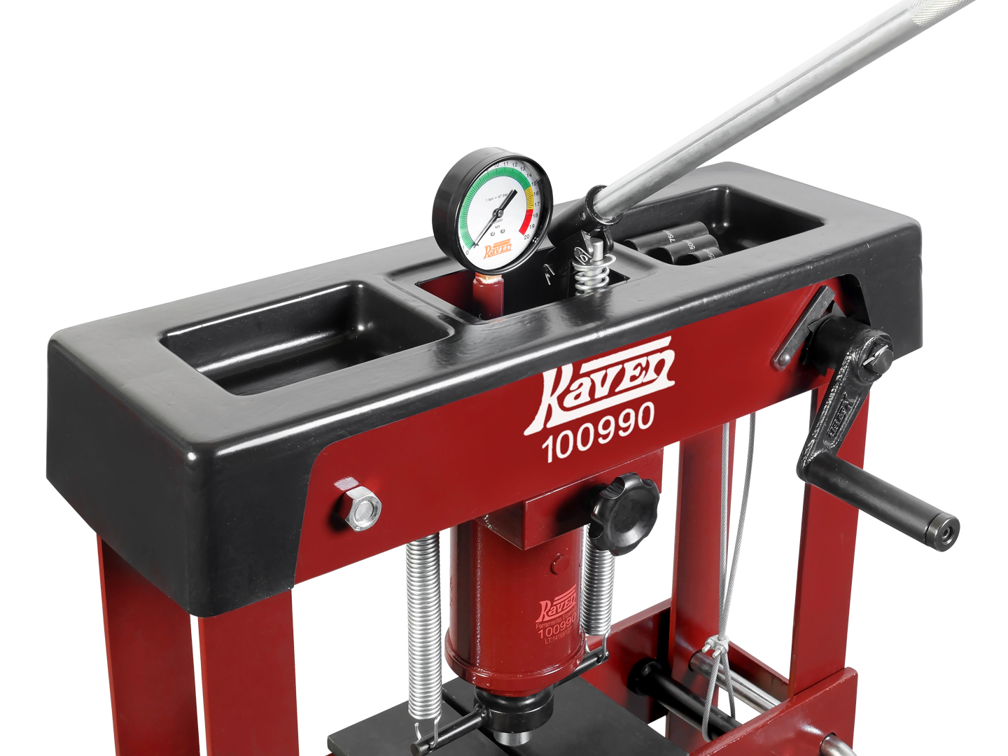 Código: 100990Nome: Prensa hidráulica de 20 toneladas para extrair e instalar componentes mecânicos, automotivos e industriais, como rolamentos, buchas e outros que são instalados por interferência.<ul><li>Possui.</li><li>a) bomba hidráulica com capacidade de 20 toneladas / 20.000 kgf / 940 bar, pistão hidráulico com curso de 110 mm e escala milimétrica gravada, válvula de segurança que impede que a carga ultrapasse 20 toneladas e manômetro com escala colorida.</li><li>b) estrutura robusta (50% mais pesada que prensas similares) e desmontável, que proporciona alta resistência e facilita o transporte.</li><li>c) mesa de apoio móvel, com ajuste de altura através de manivela e cabo de aço (possivelmente a única prensa desmontável com esse recurso), além de chapas de 120 mm de altura, dimensionadas para suportar cargas de 20 toneladas.</li><li>d) exclusiva bandeja coletora móvel.</li><li>e) exclusivo acabamento plástico superior com 2 compartimentos para ferramentas e peças.</li><li>f) conjunto com 3 prolongadores para o pistão hidráulico com 25 / 50 / 75 mm.</li><li>Manual incluso.</li></ul>Família: UniversalPeso: 91,5 Kg |