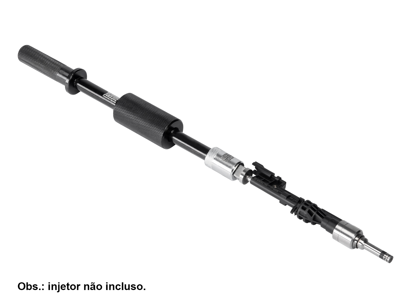 Código: 101250Nome: Conjunto de extratores (à percussão) de injetores de combustível "GDI" de motores ciclo Otto equipados com injeção direta.<ul><li>Acompanha 7 adaptadores.</li><li>Produto fornecido em 1 estojo plástico especial com interior em EVA.</li><li>Composição:</li><li>1 - Cabo longo com 220 mm e duas roscas (801406-00B).</li><li>1 - Cabo curto com 130 mm, rosca e batente, para injetores localizados em pontos de difícil acesso (101250-00H).</li><li>1 - Manopla para o cabo longo com 80 mm, rosca, batente e acabamento recartilhado (801406-00E).</li><li>1 - Peso deslizante com 0,52 kg e acabamento recartilhado (801406-00C).</li><li>1 - Adaptador com abertura de 6,8 / 10,5 mm para injetores dos motores Ford 2.0 16V turbo EcoBoost, Hyundai 1.0 12V (3 cils.) turbo T-GDi Kappa II (F3LC) e VW / Audi EA211 1.0 12V (3 cils.) turbo TSI / 170 TSI / 200 TSI e 1.4 16V turbo TSI / 250 TSI / TFSI / 35 TFSI (101250-00D).</li><li>1 - Adaptador com abertura de 8,2 / 12,6 mm para injetores de motores Renault 1.0 12V SCe (3 cils.) (B4D HS / LS) (101250-00G).</li><li>1 - Adaptador curto com abertura de 9,8 / 13,5 mm para injetores dos motores Fiat / Stellantis GSE 1.0 12V (3 cils.) MultiAir turbo T200 e 1.3 16V MultiAir turbo T270 (101250-00C).</li><li>1 - Adaptador com abertura longa de 10,0 / 13,5 mm para injetores de motores Renault 1.0 12V (3 cils.) turbo TCe (H5Dt) e Mercedes-Benz / Renault 1.3 16V turbo TCe (M282 / H5Ht) (101250-00F).</li><li>1 - Adaptador longo com abertura longa de 15,8 / 19,3 mm para injetores de motores Mercedes-Benz (101250-00E).</li><li>1 - Adaptador com rosca M12 x 1,5 mm para injetores dos motores BMW 2.0 16V turbo (N20), 3.0 24V 6 cils. em linha turbo / biturbo (N54 / N55) e 4.4 32V V8 biturbo (N63) (101250-00B).</li><li>1 - Adaptador com dois furos oblongos (e 2 parafusos) para injetores dos motores GM Ecotec 1.4 16V turbo (LE2) e 1.5 16V turbo (LYX) e motores BMW 1.2 12V (3 cils.) TwinPower Turbo (B38), 1.5 12V (3 cils.) TwinPower Turbo (B36 / B38), 2.0 16V TwinPower Turbo (B46 / B48) e 3.0 24V (6 cils. em linha) biturbo (B58 / S58) (131021-00C).</li></ul>Família: MotorPeso: 3,9 Kg |