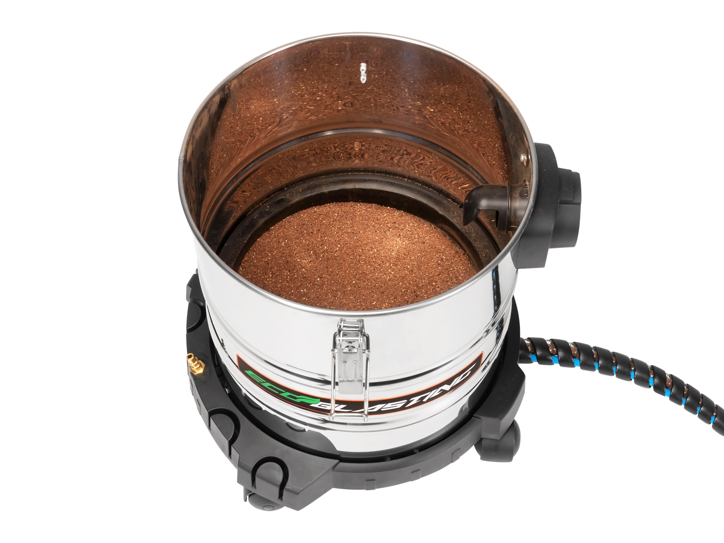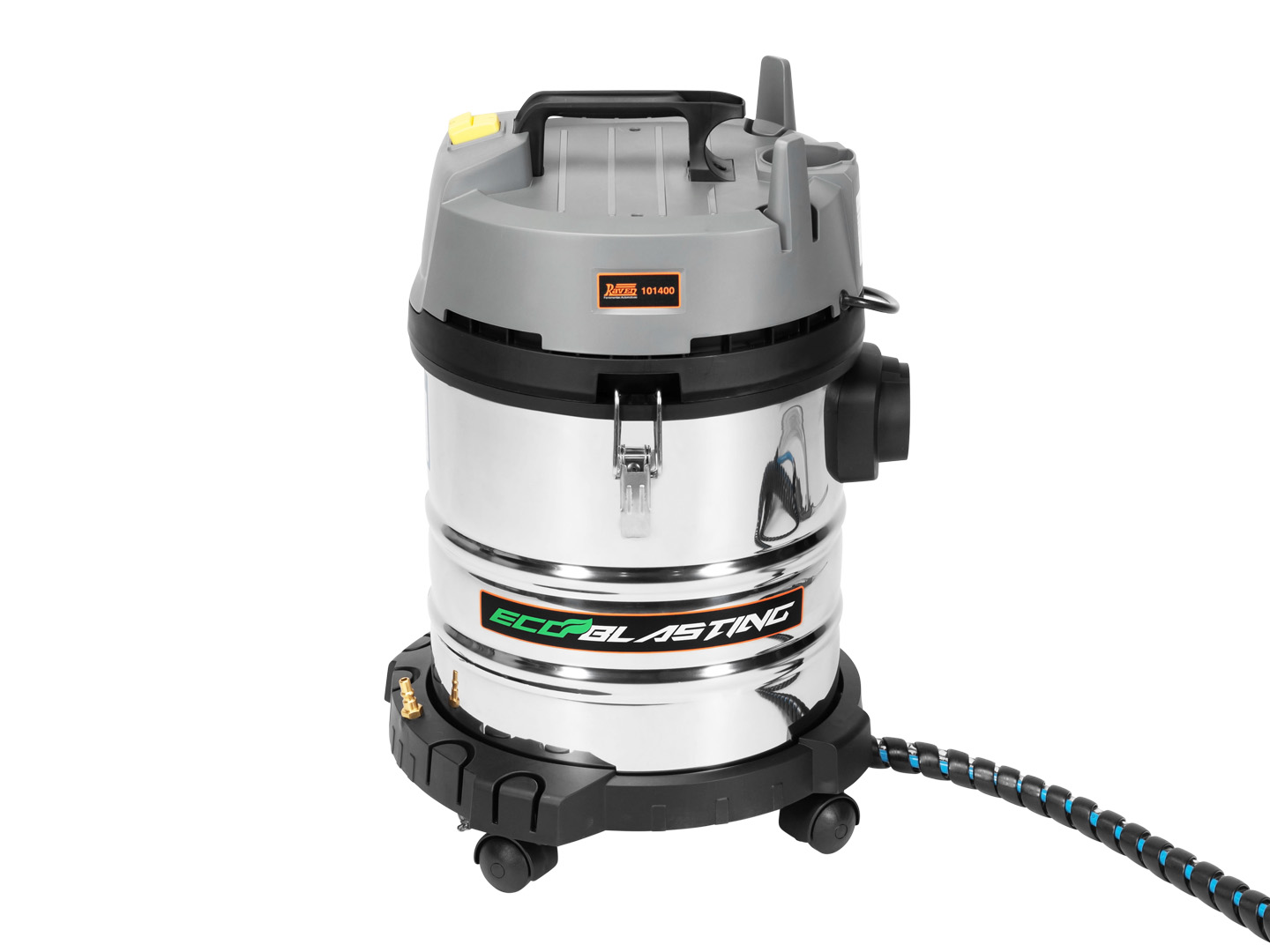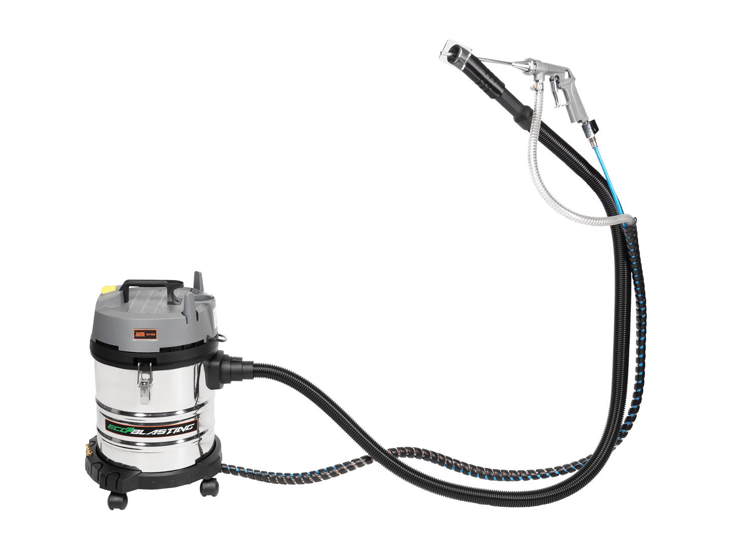 Código: 101400Nome: EcoBlasting - Equipamento para descarbonização de dutos e válvulas de admissão, através do jateamento de cascas de nozes.<ul><li>Aplicação:</li><li>Motores ciclo Otto (especialmente os equipados com injeção direta).</li><li>Características/Diferenciais.</li><li>a) Motor com 1.400W (alimentação 220V).</li><li>b) Tanque em inox com capacidade de 20 litros e funil interno, para proporcionar alimentação contínua de cascas de nozes.</li><li>c) Engate rápido para conexão de linha de ar comprimido.</li><li>d) Placa de acrílico para apoio e vedação no cabeçote (101400-00Y).</li><li>e) Fornecido com material abrasivo, 2 kgs de cascas de nozes trituradas em grãos de 0,6 a 1 mm (101400-00X).</li><li>Observação.</li><li>Para um jateamento eficiente, a pressão contínua na linha de ar comprimido deverá ser de 6 a 10 bar.</li><li>Manual Incluso.</li></ul>Família: MotorPeso: 10,7 Kg |