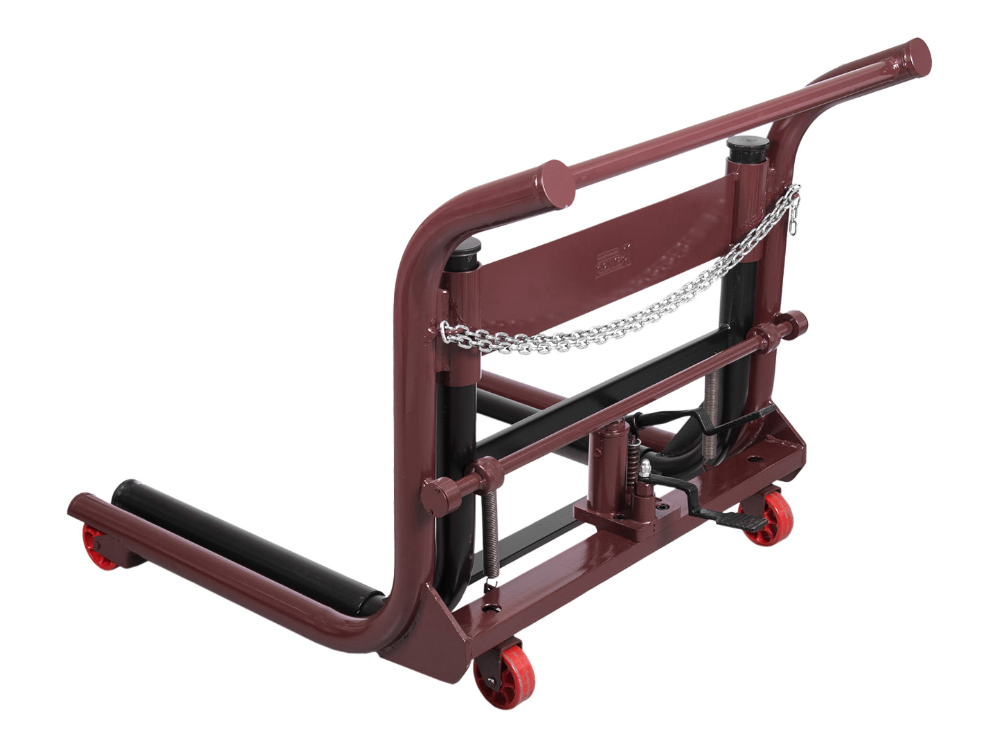 Código: 104502Nome: Macaco hidráulico com rodas em poliamida para instalar e remover rodeiros traseiros de caminhões (carga máxima suportada 800 kgs).<ul><li>Utilizado em pneus com diâmetros entre 800 (8.25 R15) e 1.118 mm (11.00 R22).</li><li>Dimensões (mm) 1250 (C) x 1000 (L) x 900 (A).</li><li>Manual incluso.</li></ul>Família: Suspensão TraseiraPeso: 85 Kg |
