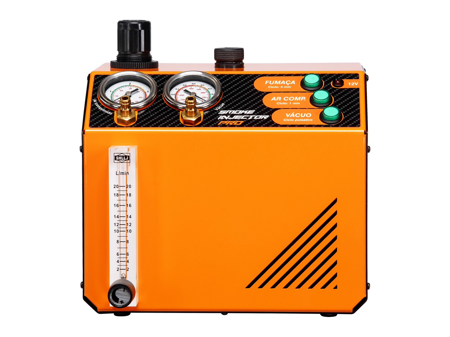 Código: 109200Nome: Smoke Injector PRO - Equipamento 3 em 1 (gera e injeta fumaça / injeta ar comprimido / gera vácuo) para localizar vazamentos e testar sistemas e componentes automotivos (ex.: motor, sistemas de admissão, arrefecimento, cânister, combustível, escapamento, turbo compressor, intercooler etc).<ul><li>A partir do aquecimento de óleo mineral, feito de forma controlada e segura, o 109200 gera fumaça de boa densidade e fácil visualização.</li><li>Conectado a uma linha de ar, o 109200 injeta ar comprimido, possibilitando o ajuste da pressão e da vazão do ar, além de contar com manômetro.</li><li>Através de uma de suas duas mini bombas, o 109200 gera vácuo, que pode ser acompanhado através do vacuômetro do equipamento.</li><li>Incluso maleta plástica com mangueiras e adaptadores equipados com engates rápidos e tampões de borracha, além de um frasco de fluido para testes reagente à luz UV.</li><li>Alimentação em 12V.</li><li>Composição:</li><li>1 - Aparelho gerador / injetor de jatos de fumaça injetor de ar comprimido e gerador de vácuo, com.</li><li>a) Duas mini bombas de vácuo (que produzem pressão de 0,9 bar e vazão de 13 litros por minuto cada).</li><li>b) Manômetro para ar comprimido com caixa em aço com diâmetro 40 mm e escalas de 0 a 4 bar e 0 a 58 psi.</li><li>c) Regulador de pressão para ar comprimido.</li><li>d) Fluxômetro (medidor de vazão) para ar comprimido, com escala de 2 a 20 l/min.</li><li>e) Vacuômetro com caixa em aço com diâmetro 40 mm e 3 escalas coloridas (0 a -1 bar / 0 a -750 mmHg / 0 a -29,5 inHg).</li><li>f) Gabinete de aço com pés de borracha.</li><li>g) 2 engates rápidos traseiros, sendo um para alimentação de ar comprimido e outro para descarga de vácuo.</li><li>h) 2 engates rápidos de saída, sendo um para fumaça e ar comprimido e o outro para vácuo (109200-01A).</li><li>1 - Cabo para alimentação em baterias 12V com duas garras jacaré (PRT0487).</li><li>1 - Kit de mangueiras e adaptadores para testes, fornecido em uma maleta plástica média com revestimento interno em EVA (109200-00Z) e composto por.</li><li>1 - Mangueira principal de silicone com 2 m, engate rápido de 1/4" para ar comprimido e engate rápido tipo "Click" fêmea 5/16" (109200-00Q).</li><li>1 - Mangueira de silicone para injetar fumaça / ar comprimido / gerar vácuo com 0,15 m, bico cônico fixo de saída com diâmetros de 6 a 15 mm e furo com diâmetro de 4 mm e engate rápido tipo "Click" 5/16" (109200-00S).</li><li>1 - Adaptador inflável para injetar fumaça / ar comprimido / gerar vácuo ou vedar tubulações com diâmetro interno de no mínimo 40 mm, com tubo inflável, bomba "pêra" manual e engate rápido tipo "Click" 5/16" (109200-00P).</li><li>1 - Adaptador cônico para injetar fumaça / ar comprimido / gerar vácuo em tubulações. Possui cone de borracha com diâmetros de 30,5 a 85 mm, mangueira de silicone com 0,3 m e engate rápido tipo "Click" 5/16" (109200-00O).</li><li>1 - Adaptador de borracha (ponta) para injetar fumaça / ar comprimido / vácuo em tubulações. Possui diâmetro 26 mm, ponta cônica com diâmetros de 4,5 a 12 mm e furo de saída de diâmetro 3 mm (109100-00N).</li><li>1 - Adaptador para testar sistemas de cânister com rosca de 1/4" x 19 fpp e mangueira de silicone com 0,30 m (109100-00R).</li><li>1 - Tampão cônico de borracha com diâmetros de 5 a 10 mm (109100-00F).</li><li>1 - Tampão cônico de borracha com diâmetros de 9 a 15 mm (109100-00G).</li><li>1 - Tampão cônico de borracha com diâmetros de 14 a 19 mm (109100-00H).</li><li>1 - Tampão cônico de borracha com diâmetros de 18 a 26 mm (109100-00I).</li><li>1 - Tampão cônico de borracha com diâmetros de 25 a 35 mm (109100-00J).</li><li>1 - Tampão cônico de borracha com diâmetros de 32 a 45 mm (109100-00K).</li><li>1 - Tampão cônico de borracha com diâmetros de 45 a 60 mm (109100-00L).</li><li>1 - Tampão cônico de borracha com diâmetros de 60 a 75 mm (109100-00M).</li><li>1 - Frasco com 250 ml de óleo mineral revelador de vazamentos (reagente à luz UV), com cor verde fluorescente (PRT5902).</li><li>Manual Incluso.</li></ul>Família: UniversalPeso: 7,2 Kg |